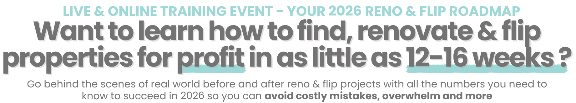 ➡️You have maybe even said to yourself, I watch all the reno shows, I love the idea of renovating and flipping homes, and I would dearly love to leave my job, but I simply don’t know where to start.