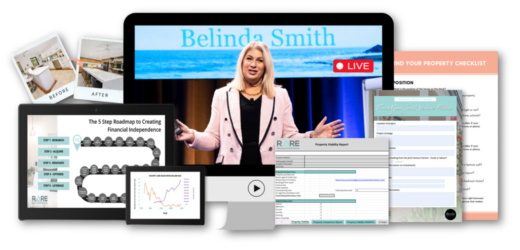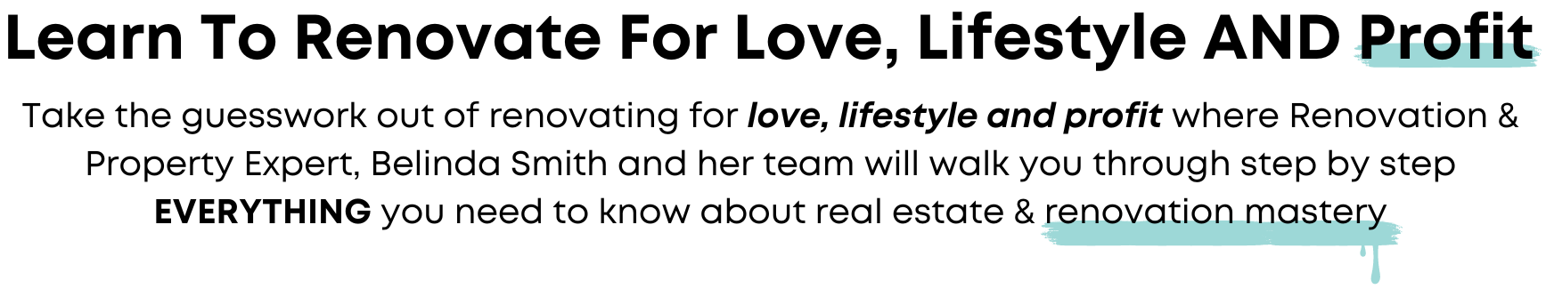 Belinda Smith has over 30 years of real estate and renovation experience and has done several reno & flips for significant profit. Her coaches work full time doing renovations and house flipping in their own right and she and our team now work with over 700 students (at the time of writing) in her Renovation Mastery training program. She has been featured in major publications and podcasts along with the likes of Sky News and more talking about about renovation and real estate.